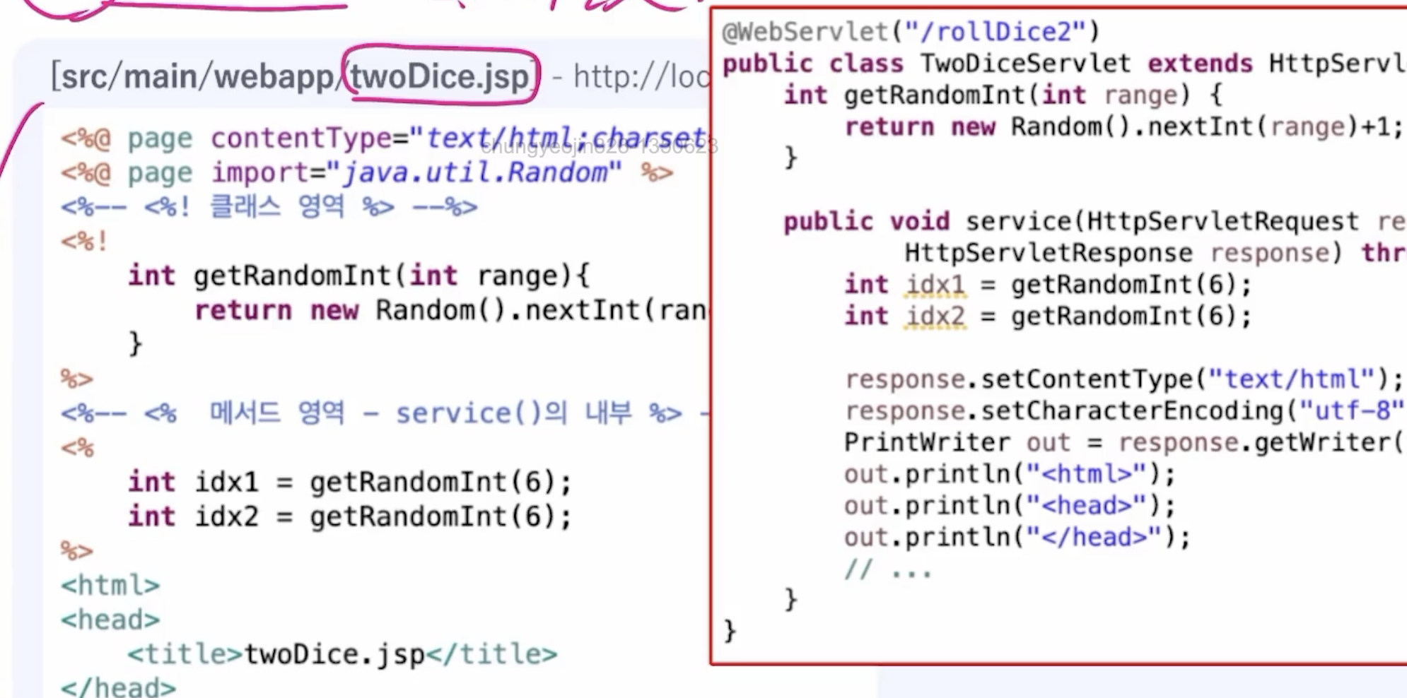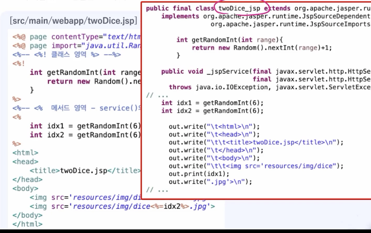 JSP와 서블릿으로 변환된 JSP의 비교