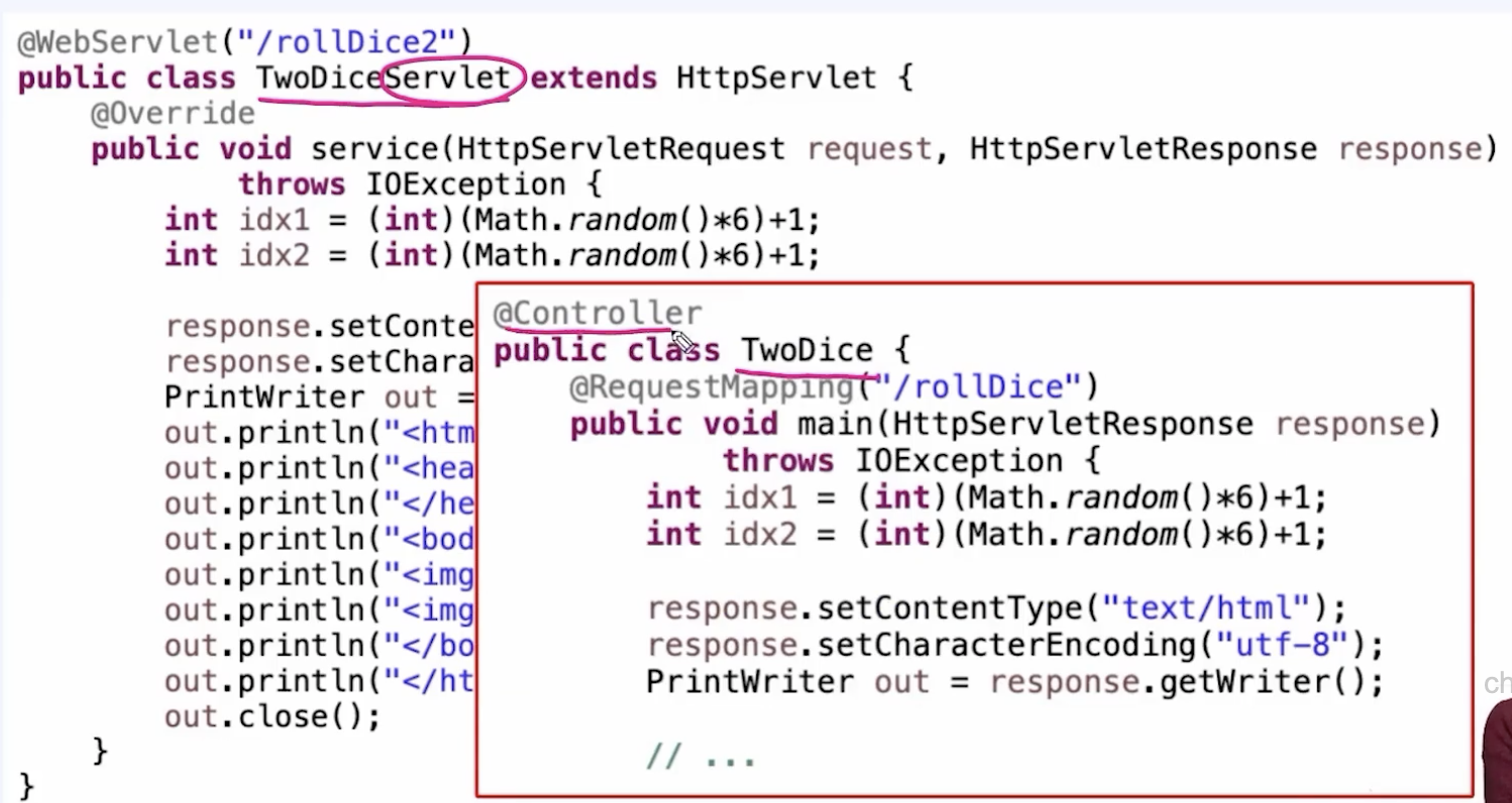 @WebServlet은 @Controller + @RequestMapping 과 유사한 역할을 합니다
