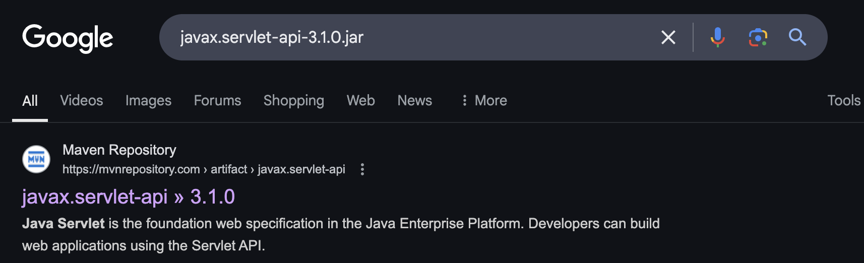 링크에 들어가 검색창에 java servlet을 검색했다.