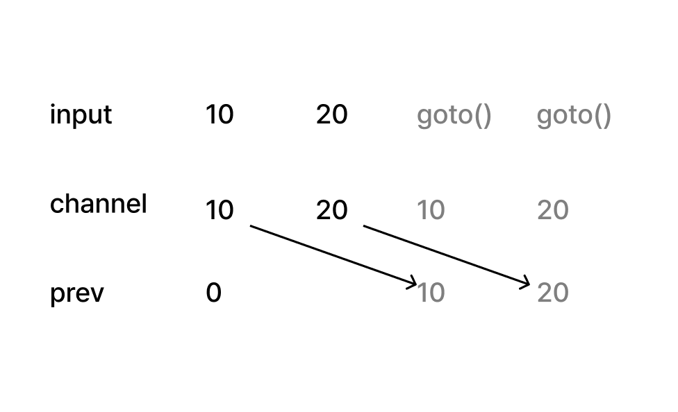 // 근데 채널은 int 이기때문에 이전의값을 저장하지 못한다.