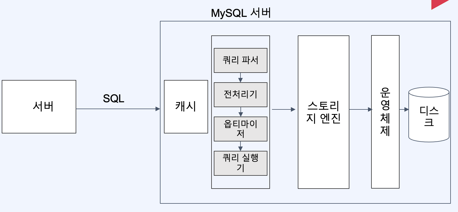 | MySQL 엔진 | SQL을 분석하고 실행 계획을 세움 |